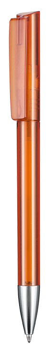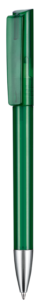 Kugelschreiber mit Drehmechanik und angespritztem Clip. Glänzende Oberflächen, transparentes Gehäuse und Metallspitze vermitteln Wertigkeit. Gutes Preis-Leistungsverhältnis. Ausgestattet ist dieses Schreibgerät mit einer blau schreibenden Budget-Großraummine.