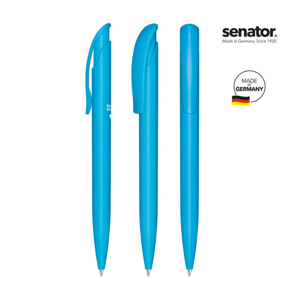senator® Challenger Matt Recycled Druckkugelschreiber. Nachhaltiger Recycling-Klimafreund. Druckkugelschreiber aus >95 % R-ABS-Recyclingmaterial, matt opak. Klimaneutrales Produkt produziert mit CO2-neutralem Ökostrom. Made in Germany. Langlebige senator® magic flow G2 Mine (1,0 mm), Schreiblänge bis zu 5000 m, Tintenfarbe: Blau. Option einer kostenlosen Ersatzmine unter minen.senator.com.