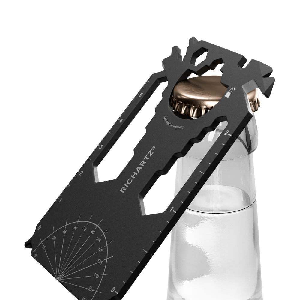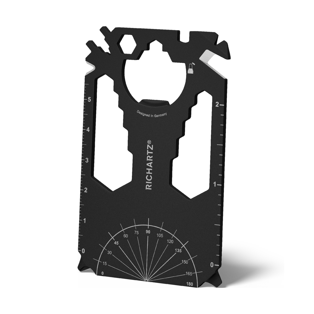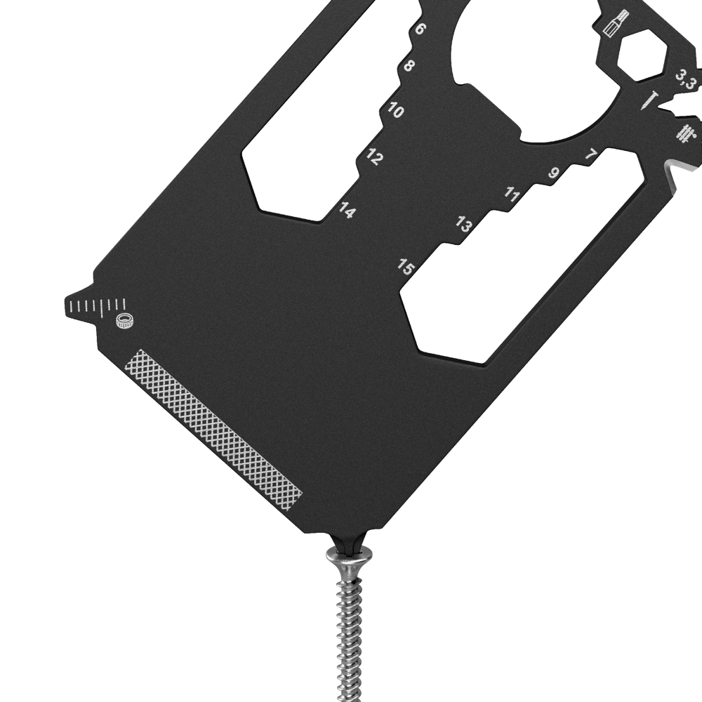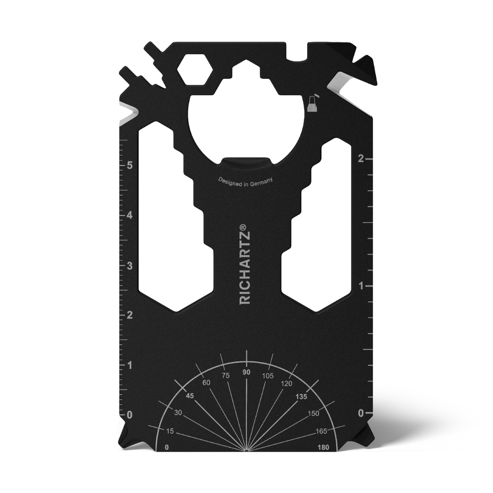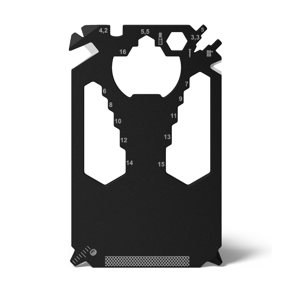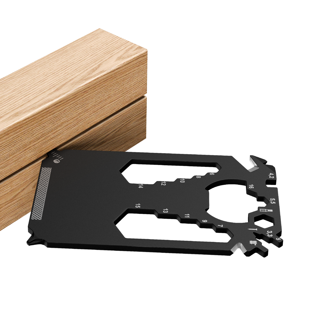 Zugegeben: Die Scheckkarte ersetzt er nicht ganz. Aber man munkelt, er sei ähnlich wertvoll und schöner allemal: Der im edlen Schwarz und Kreditkarten-klein gehaltene Helfer schafft schnell bleibende Werte in unterschiedlichsten Alltagssituationen. Eisen stemmen, Inches messen oder Zentimeter, Kabel isolieren, Nägel feilen. Noch dazu kommt er ganz ohne Überziehungszinsen daher!