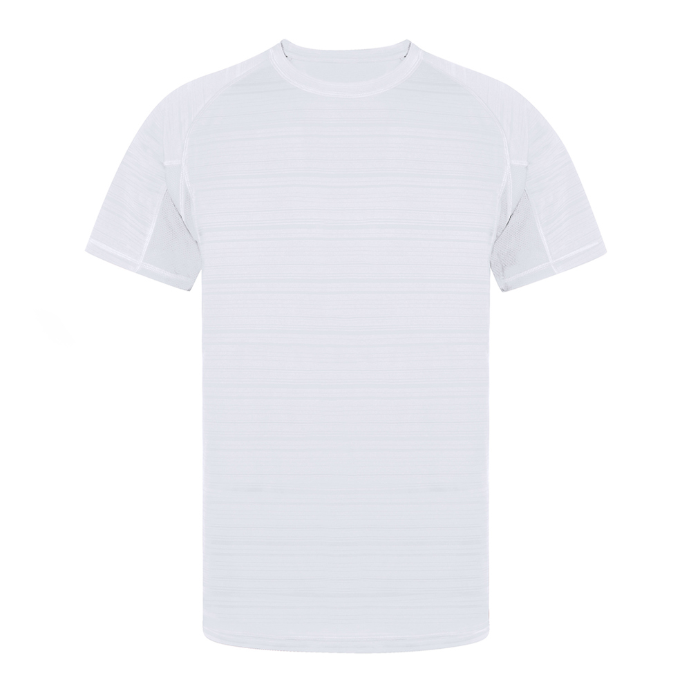 Technisches Unisex-T-Shirt mit originellem Streifendesign in Kombination mit atmungsaktivem mikroperforiertem Gewebe an Achseln und Seiten. Hergestellt aus weichem Material 100% Polyester 135g/m2, ein sehr bequemes, leichtes und atmungsaktives T-Shirt; ideal für den Sport und auch als Kleidungsstück für den täglichen Gebrauch. Moderner Schnitt, Ranglan-Ärmel und Rundhalsausschnitt, mit doppelter Naht am Saum und doppelt gewebten Ärmeln für zusätzliche Haltbarkeit und Strapazierfähigkeit. Erhältlich in den Größen XS, S, M, L, XL und XXL.