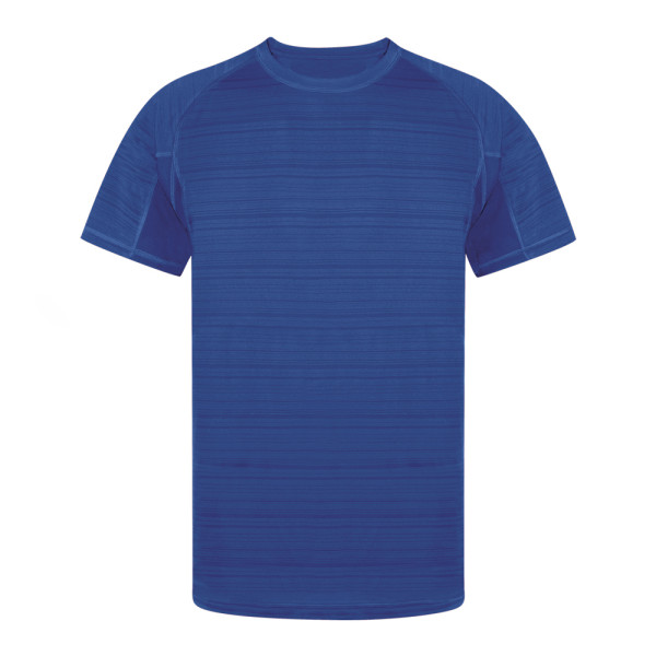 Technisches Unisex-T-Shirt mit originellem Streifendesign in Kombination mit atmungsaktivem mikroperforiertem Gewebe an Achseln und Seiten. Hergestellt aus weichem Material 100% Polyester 135g/m2, ein sehr bequemes, leichtes und atmungsaktives T-Shirt; ideal für den Sport und auch als Kleidungsstück für den täglichen Gebrauch. Moderner Schnitt, Ranglan-Ärmel und Rundhalsausschnitt, mit doppelter Naht am Saum und doppelt gewebten Ärmeln für zusätzliche Haltbarkeit und Strapazierfähigkeit. Erhältlich in den Größen XS, S, M, L, XL und XXL.