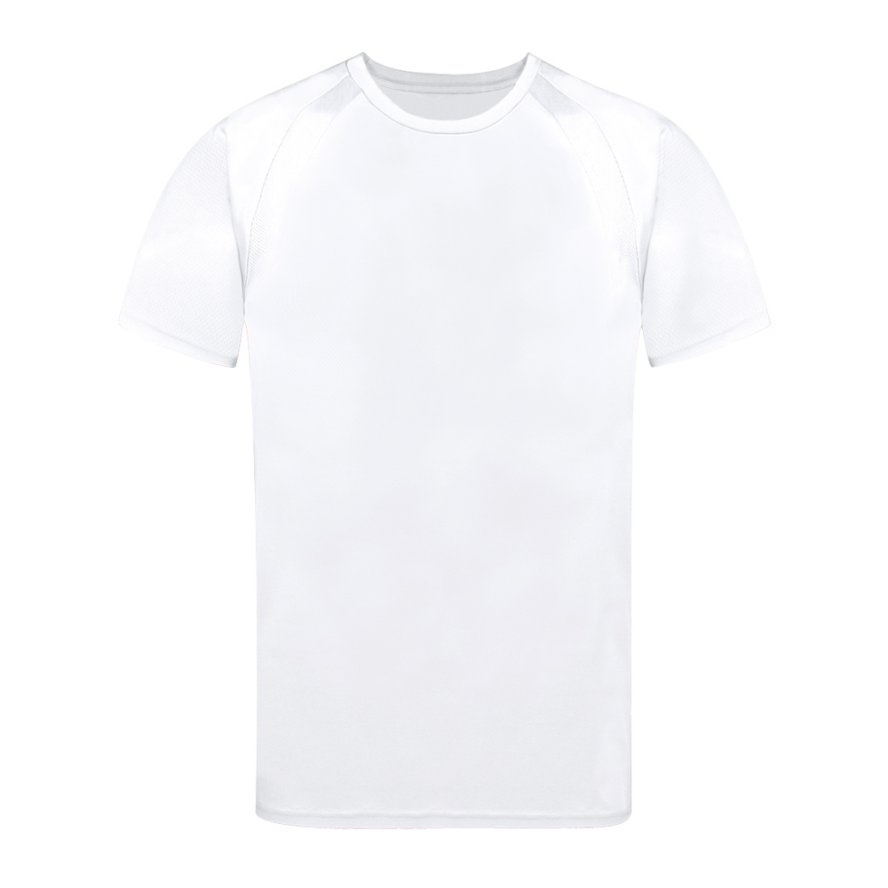 Technisches T-Shirt für Erwachsene aus 100% atmungsaktivem Polyester 135g/m2. Mit Ranglan-Ärmeln, Rundhalsausschnitt und Front- und Seitenstreifen aus atmungsaktivem, mikroperforiertem Gewebe. Erhältlich in den Größen S, M, L, XL, XXL.