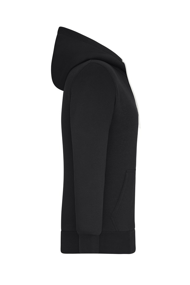 Hochwertige Sweat-Qualität aus 85% gekämmter und ringgesponnener BIO-Baumwolle Jacke ist komplett gefüttert, Sherpa-Futter aus 100% recyceltem Polyester Kapuze mit Kordelzug, Reißverschluss in Kontrastfarbe Kängurutasche Bündchen mit Elasthan Veredelungsreißverschluss im Rückenteil Reißverschlüsse: YKK 1/2 Oberweite: 48 cm 1/2 Taillenweite: 45 cm 1/2 Saumweite: 40 cm Länge ab Schulter: 62 cm Ärmel Länge: 61 cm OEKO-TEX® Standard 100 (15.0.70467) Bio Baumwolle OCS Standard blended Kapuze YKK - Reißverschluss