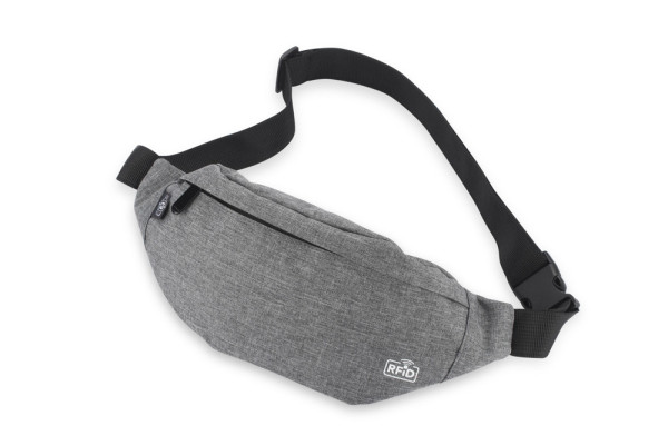 Die Hüfttasche CHILLIX ist eine ausgezeichnete Wahl für körperliche Aktivitäten im Freien. Mit Reißverschluss verschlossen. Ausgestattet mit einer Folie, die vor Diebstahl von Kreditkartendaten schützt, indem sie das RFID-Signal blockiert. Hergestellt aus recyceltem rPET-Polyester.
