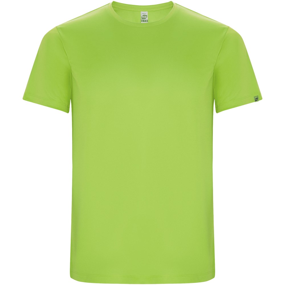 Funktions-T-Shirt aus recyceltem Polyester CONTROL DRY. Rundhalsausschnitt mit farblich abgesetzten Nähten. ECO-Logo-Etikett am Ärmel. Verpackung aus Recyclingmaterial. Herausnehmbares ECO-Etikett. Verpackung aus Recyclingmaterial. Technisches Gewebe. Das Modell ist 115 cm groß und trägt Größe 5/6.