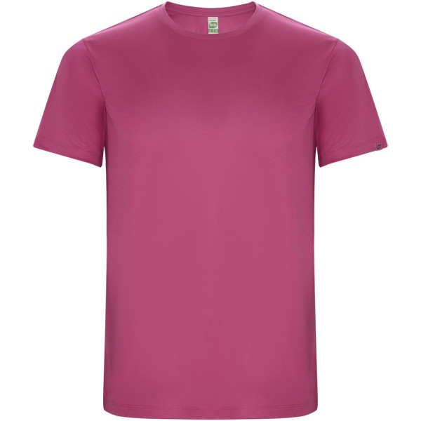 Funktions-T-Shirt aus recyceltem Polyester CONTROL DRY. Rundhalsausschnitt mit farblich abgesetzten Nähten. ECO-Logo-Etikett am Ärmel. Verpackung aus Recyclingmaterial. Herausnehmbares ECO-Etikett. Verpackung aus Recyclingmaterial. Technisches Gewebe. Das Modell ist 115 cm groß und trägt Größe 5/6.