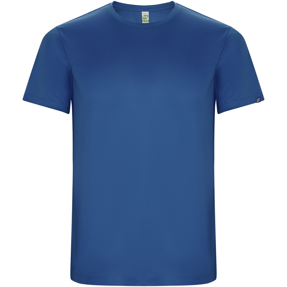 Funktions-T-Shirt aus recyceltem Polyester CONTROL DRY. Rundhalsausschnitt mit farblich abgesetzten Nähten. ECO-Logo-Etikett am Ärmel. Verpackung aus Recyclingmaterial. Herausnehmbares ECO-Etikett. Verpackung aus Recyclingmaterial. Technisches Gewebe. Das Modell ist 115 cm groß und trägt Größe 5/6.