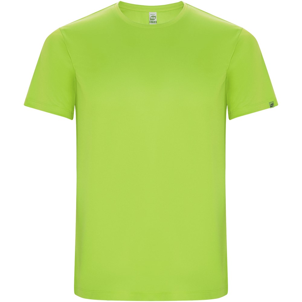 Funktions-T-Shirt aus recyceltem Polyester CONTROL DRY. Rundhalsausschnitt mit farblich abgesetzten Nähten. ECO-Logo-Etikett am Ärmel. Verpackung aus Recyclingmaterial. Herausnehmbares ECO-Etikett. Verpackung aus Recyclingmaterial. Technisches Gewebe. Das Modell ist 115 cm groß und trägt Größe 5/6.