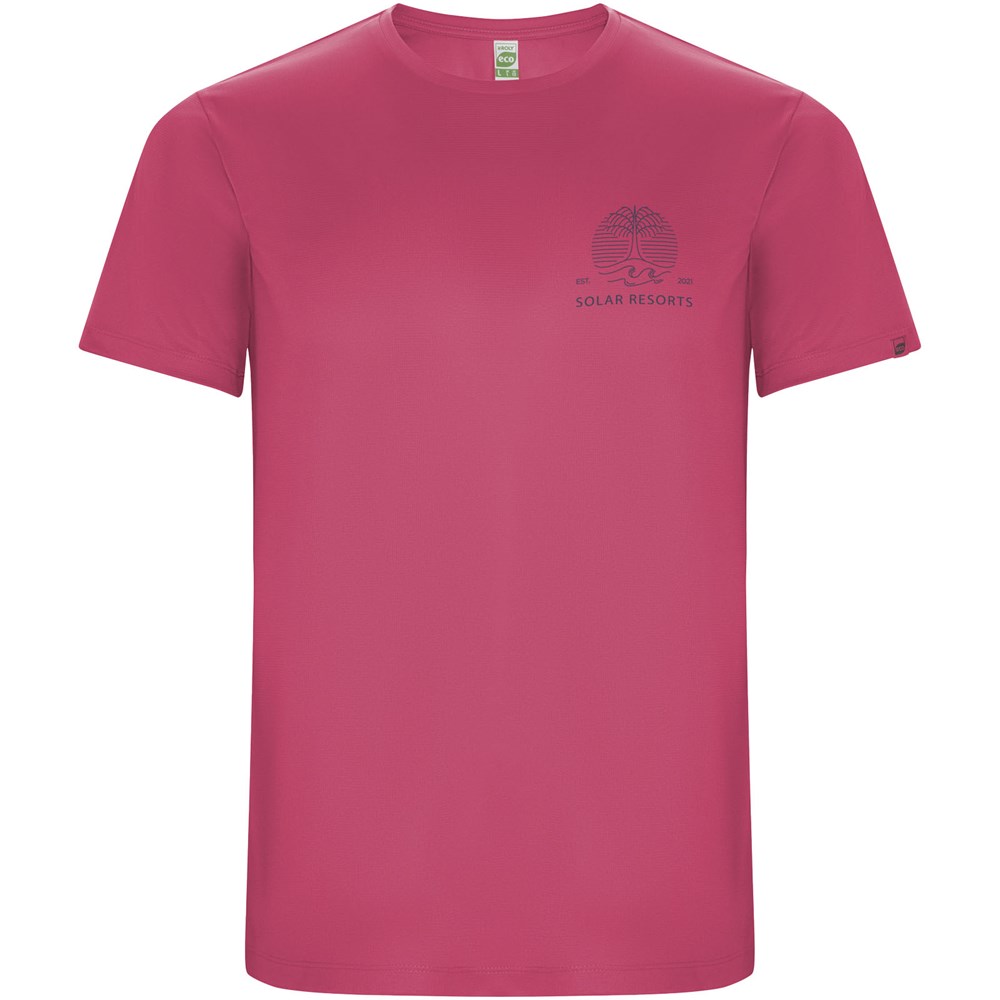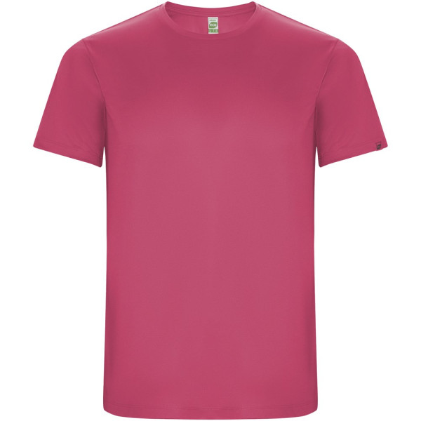 Funktions-T-Shirt aus recyceltem Polyester CONTROL DRY. Rundhalsausschnitt mit farblich abgesetzten Nähten. ECO-Logo-Etikett am Ärmel. Verpackung aus Recyclingmaterial. Herausnehmbares ECO-Etikett. Verpackung aus Recyclingmaterial. Technisches Gewebe. Das Modell ist 180 cm groß und trägt Größe M.