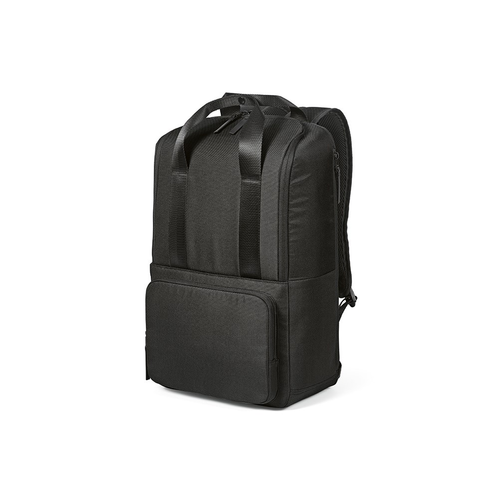 Dieser 18L Rucksack ist aus recyceltem 600D- Polyester gefertigt und garantiert Haltbarkeit und Nachhaltigkeit. Er verfügt über ein großes Hauptfach, ein spezielles Laptop-Fach und eine Rückenpolsterung. Außerdem verfügt er über einen Trolley-Gurt für die Verwendung auf Reisen.