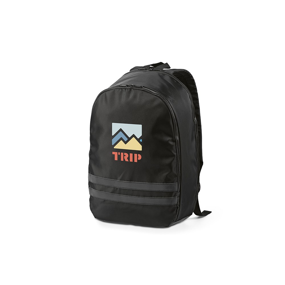Der 18L Rucksack aus rPET ist ein Symbol für Nachhaltigkeit. Ein großes Hauptfach und ein weiteres Fach für den Laptop mit integrierter Neoprenhülle. An der Außenseite sorgen zwei reflektierende schwarze Streifen für bessere Sichtbarkeit.