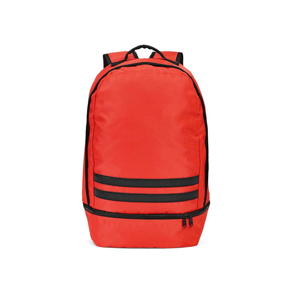 Dieser 25L Rucksack aus rPET wurde unter dem Motto "Funktionalität" entwickelt. Mit Rückenpolsterung, verstärkten oberen Tragegriff und zwei schwarzen reflektierenden Streifen auf der Vorderseite für Sicherheit. Auf der Unterseite, eine separate Tasche ideal für Schuhe. Ein Design, welches das praktische Nutzen zielt.