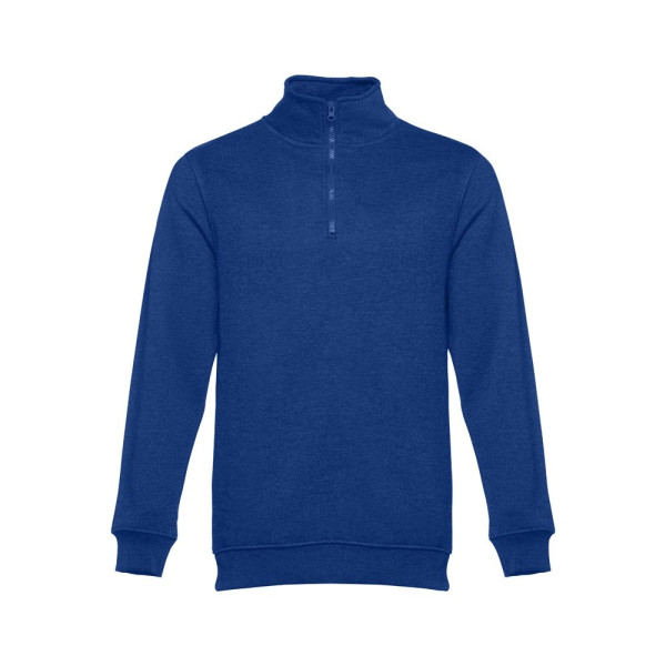 Sweatshirt aus 50% Baumwolle und 50% Polyester (320g/m²). Kardiert mit einem farbig abgestimmten Reißverschluss (1/4) und gerriptem Bund. Größen: S, M, L, XL, XXL