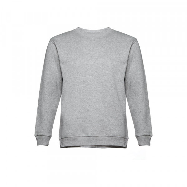 Sweatshirt aus 50% Baumwolle und 50% Polyester (300g/m²), unisex. Innen kardiert, 1x1 Ripp, Bund am Ärmel und Saum, Doppelnaht und Verstärkungsband am Kragen. Größen: S, M, L, XL, XXL