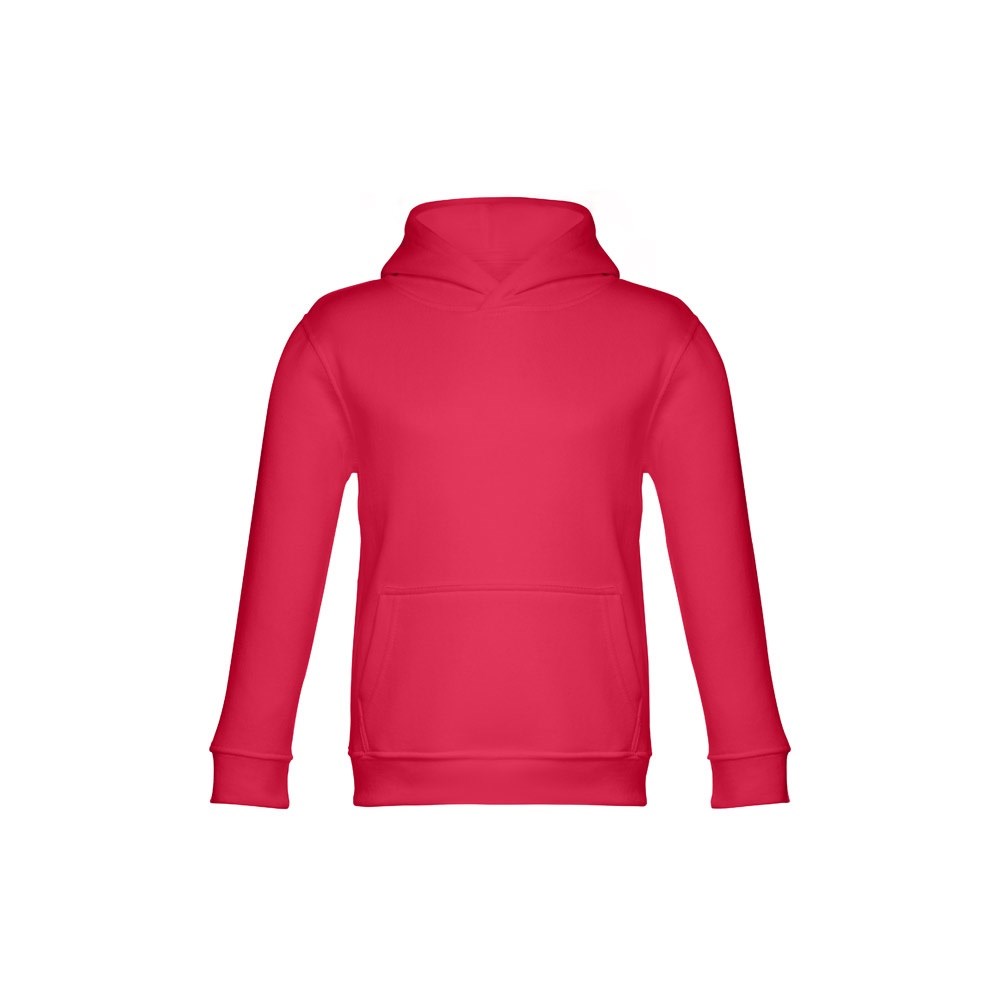 Kinder Sweatshirt aus 50% Baumwolle und 50% Polyester (320g/m²), unisex mit Kapuze in Jersey. Innen kardiert, Ripp 1x1 an Ärmelbündchen und Bund und einer Kängurutasche. Kapuze in Übereinstimmung mit den Sicherheitsstandards der Europäischen Union. Größen: 2, 4, 6, 8, 10, 12