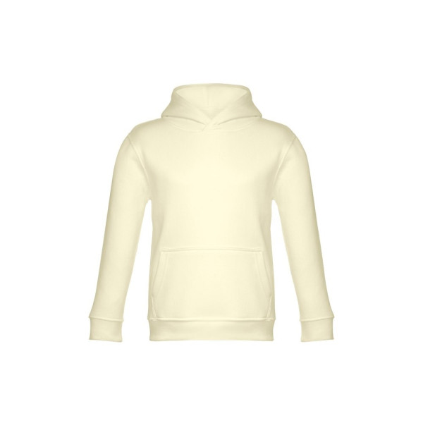 Kinder Sweatshirt aus 50% Baumwolle und 50% Polyester (320g/m²), unisex mit Kapuze in Jersey. Innen kardiert, Ripp 1x1 an Ärmelbündchen und Bund und einer Kängurutasche. Kapuze in Übereinstimmung mit den Sicherheitsstandards der Europäischen Union. Größen: 2, 4, 6, 8, 10, 12