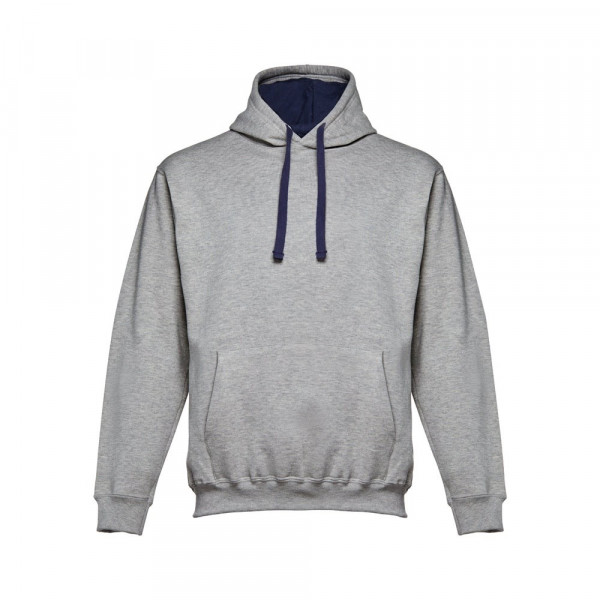 Sweatshirt aus 50% Baumwolle und 50% Polyester (320g/m²), unisex. Von innen kardiert mit einer Kängurutasche und Ripp 1x1 an Ärmelbündchen und Bund. Kapuze mit farblichem Kordelzug. Größen: S, M, L, XL, XXL
