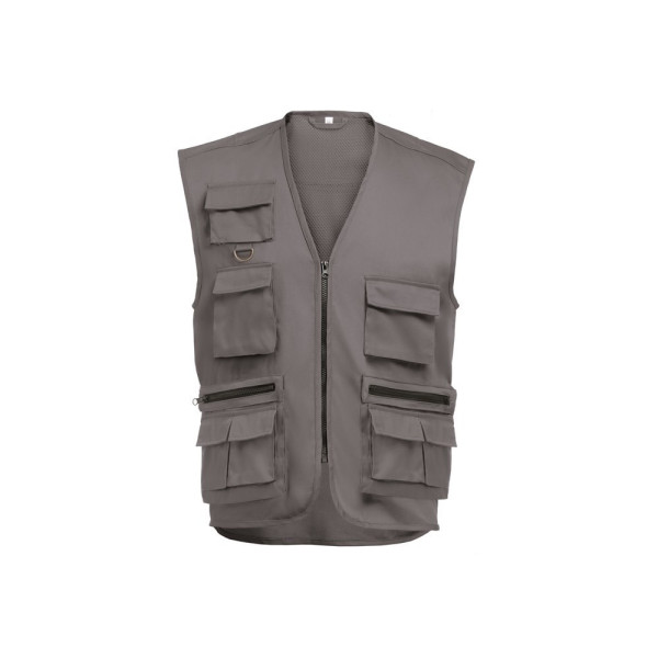 Weste (200 g/m²) aus Polyester (65%) und Baumwolle (35%) mit mehreren Taschen und wasserabweisende Behandlung. Größen: S, M, L, XL, XXL