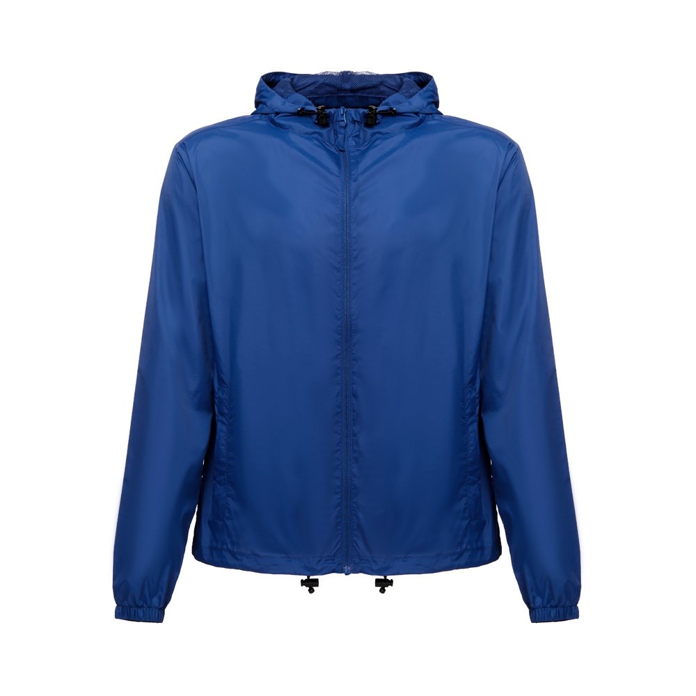 Wasserdichte Windjacke (Unisex) aus 100% recyceltem Nylontaftgewebe (65 g/m²). Vordere Öffnung mit YKK®-Reißverschluss - eine Marke, die moderne Ausrüstung und hohe Qualitätskontrolle verwendet. Die Kapuze ist mit Mesh bezogen und hat Kordelzüge zum Zuziehen. Sie hat Ösen für eine gute Belüftung, einen elastischen Verschluss mit Stoppern am Saum und Seitentaschen mit Reißverschluss. Größen: XS, S, M, L, XL, XXL