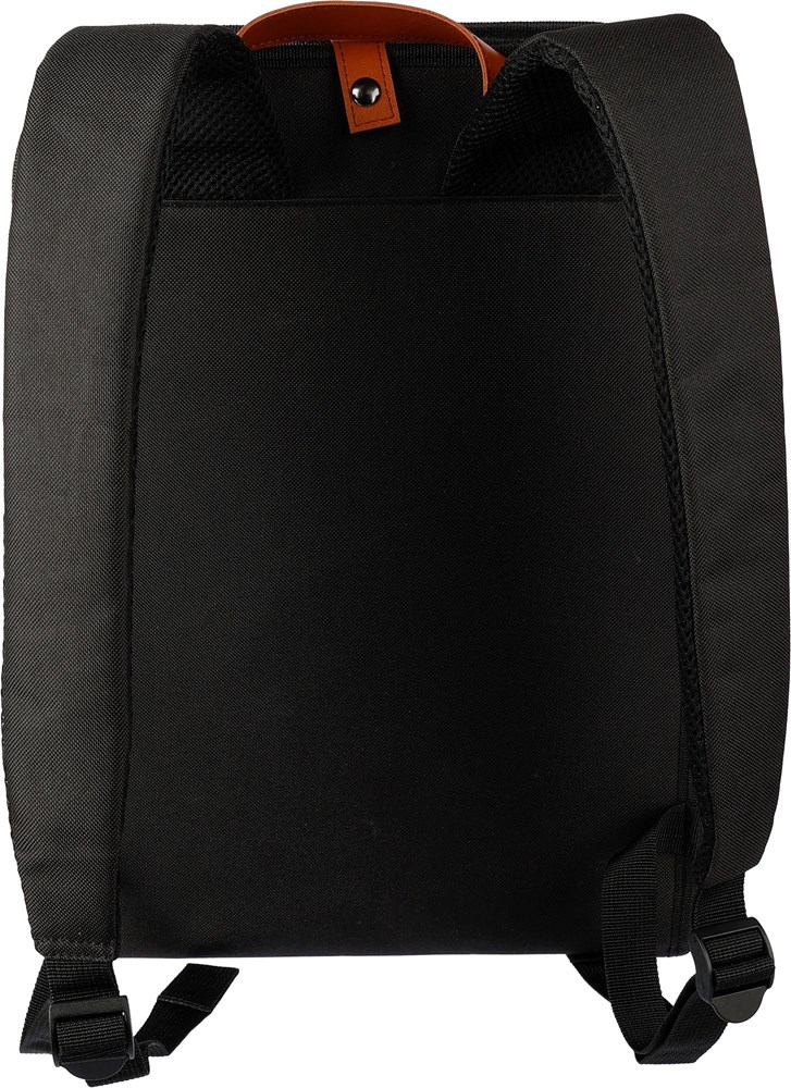 rPET (600D) Polyester Rucksack aus wasserdichtem Oxford Gewebe. Der Rucksack hat eine Laptoptasche (15 Zoll) und eine Netztasche im Inneren mit verstellbaren Trägern. Inklusive PU-Schlaufe und PU-Magnetverschluss.