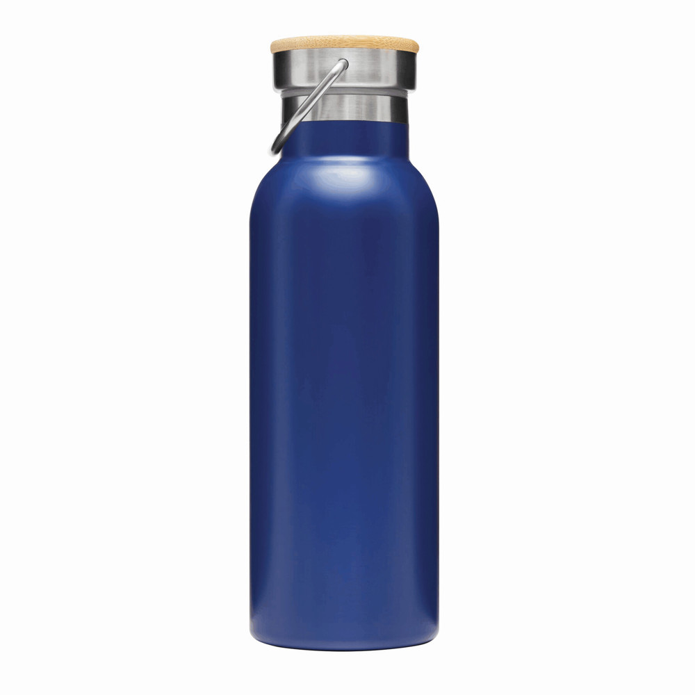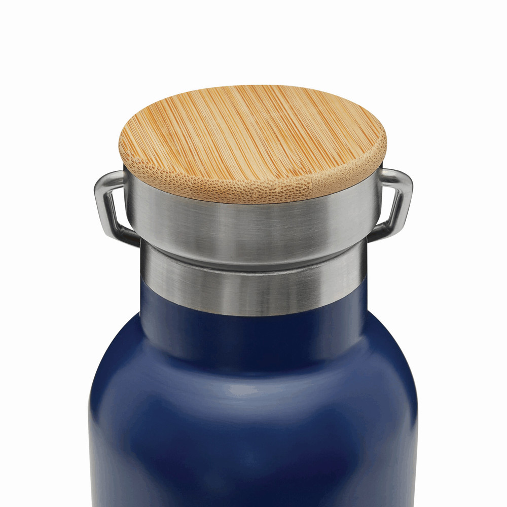 Vakuum-Trinkflasche ECO FLAVOUR, doppelwandig: innen und außen aus Edelstahl, Bambus-Deckel mit sicherem Schraubverschluss, Silikon-Dichtring und Tragegriff, Füllmenge ca. 500 ml, hält ca. 8 Stunden warm und bis zu 12 Stunden kalt
