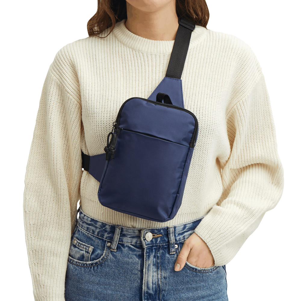 Schultertasche NEAR BY: 1 Reißverschluss-Hauptfach, innen mit 1 Steckfach, 1 Reißverschluss-Vorfach, 1 Aufhängeschlaufe, verstellbarer Schultergurt mit Schnappverschluss