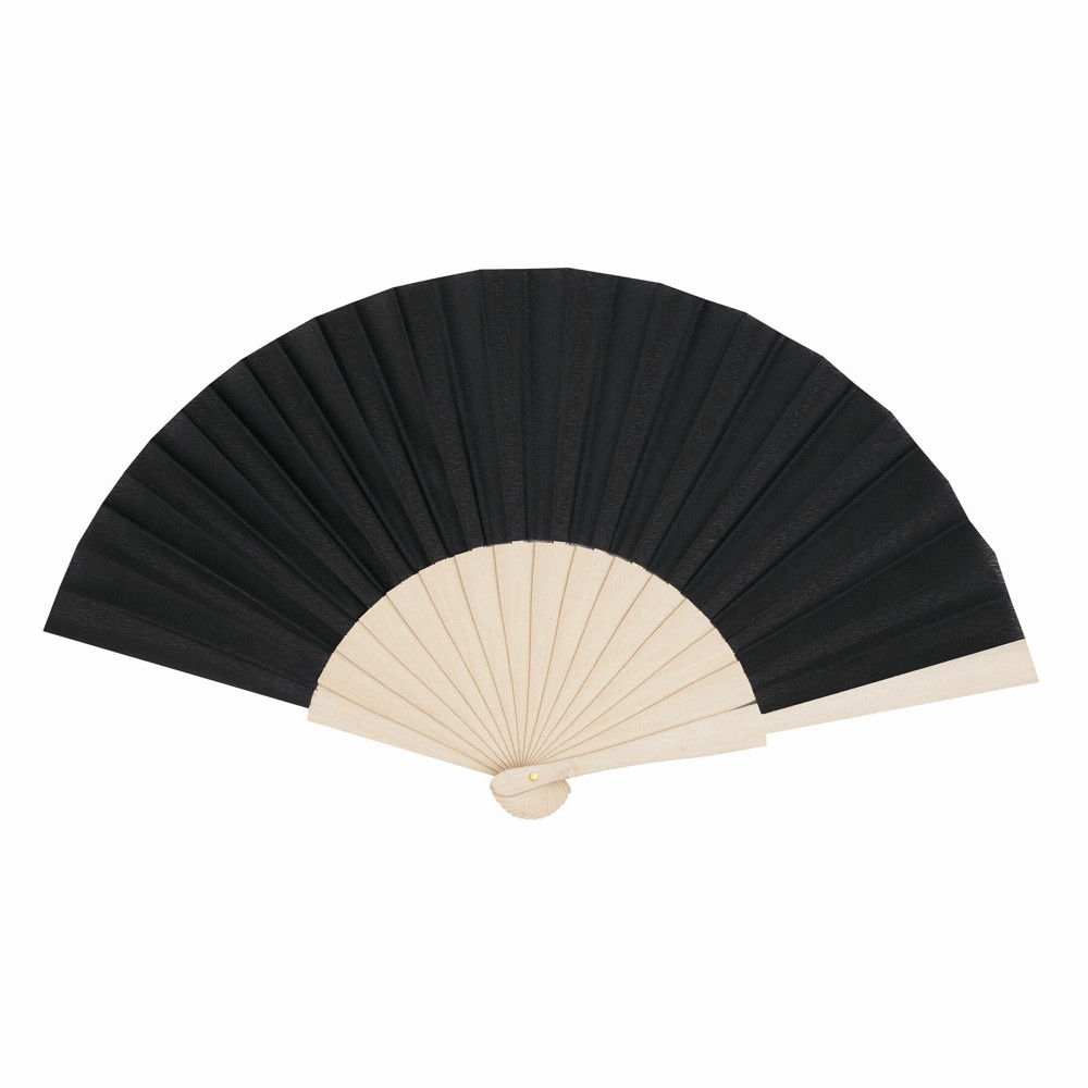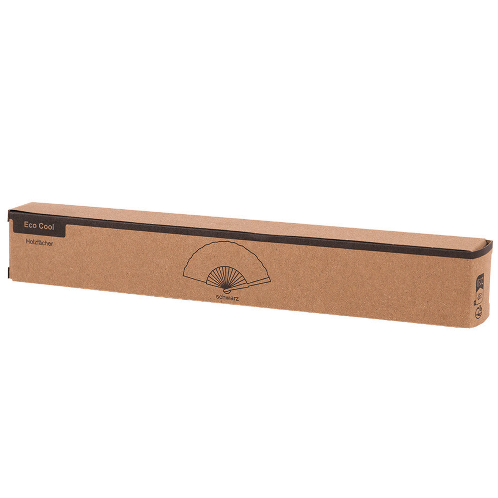 Faltbarer Fächer ECO COOL: stabiler Holzgriff und widerstandsfähige Holzstäbe mit Bespannung aus recyceltem Polyester, in Box