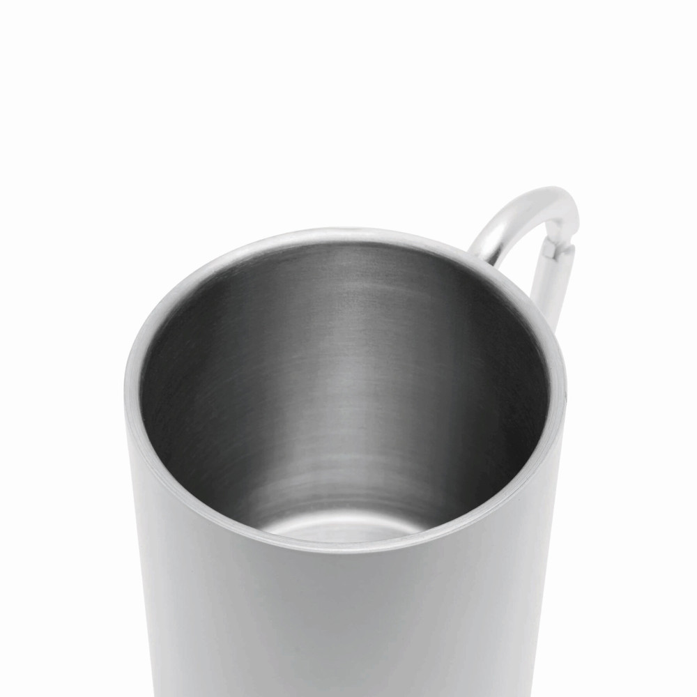 Edelstahl-Becher DEEP VALLEY, doppelwandig: außen farbig und innen silber, mit silbernem Karabinerhaken (der Karabiner ist NICHT als Sicherung beim Klettern geeignet), Füllmenge ca. 300 ml