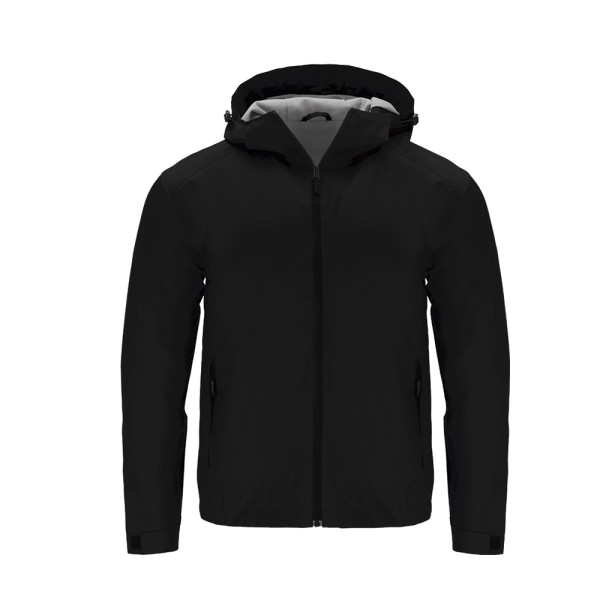 Unisex-Parka mit Kapuze, wasserdicht und winddicht. Dunkelgraues Mesh-Innenfutter, mit verstellbarer schwarzer Kordelkapuze und passenden Metallösen. Umgekehrter Frontreißverschluss in Schwarz mit passendem Zipper. Zwei Seitentaschen mit schwarzem Reißverschluss, passenden Zuglaschen und eine Innentasche. Verstellbare Ärmelbündchen mit schwarzem Klettverschluss.