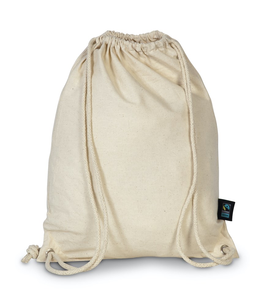 Turnbeutel aus Fairtrade Baumwolle mit Kordelzug und Ösen. Grammatur: 150g/qm. Maße: 35 x 43 cm