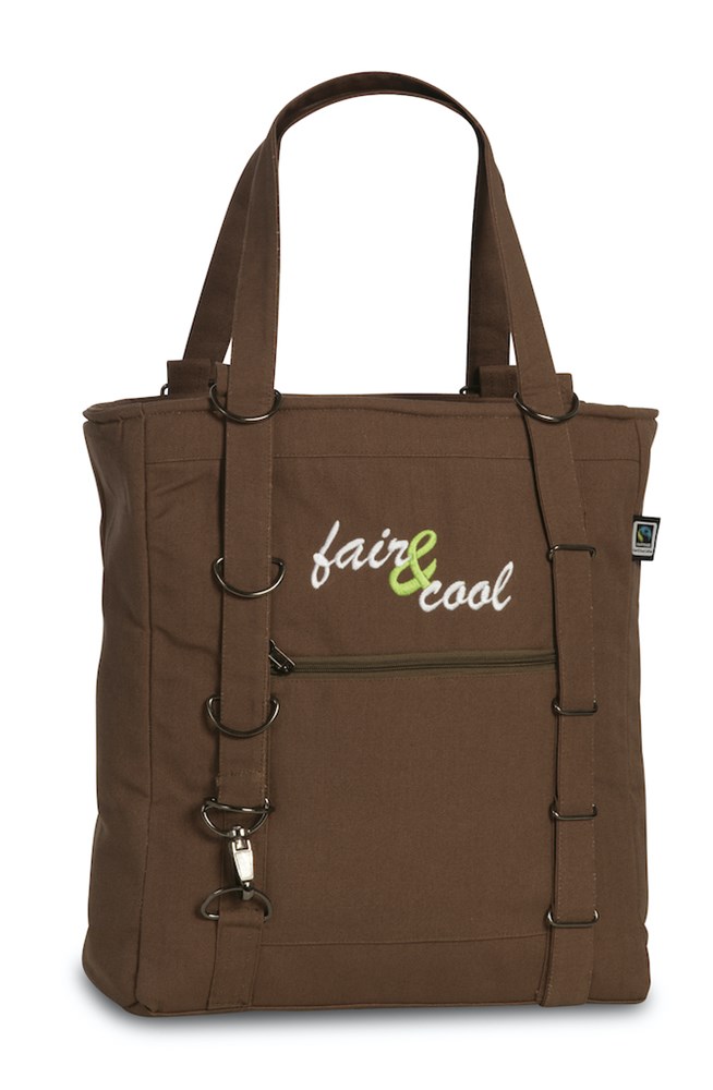 Multifunktionstasche aus Fairtrade Baumwolle mit integrierter Kühlfunktion. Tasche bietet Platz für bis zu sechs Tiefkühlpizzen. Dank der Schnallen kann die Henkellänge individuell eingestellt werden.