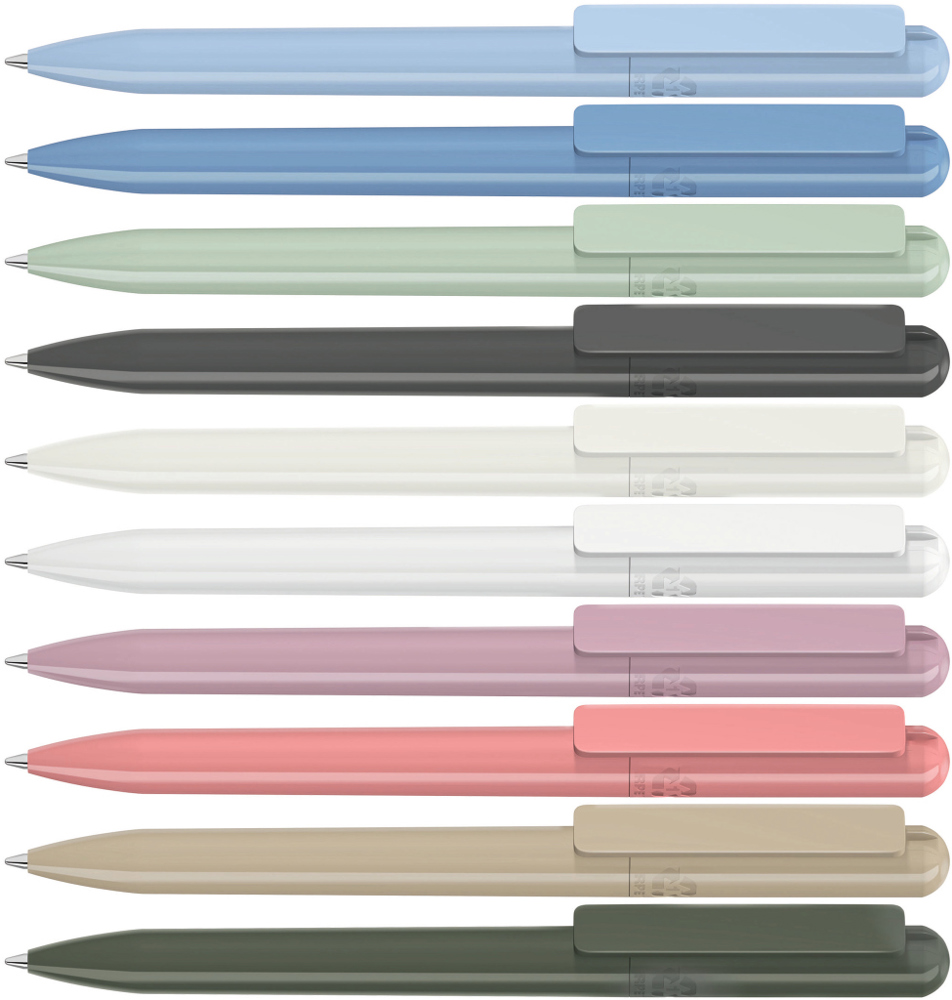 Drehkugelschreiber aus recyceltem PET-Material aus Ocean Bound Plastic mit gedeckt glänzendem Gehäuse. Das durch Plastic Bank gesammelte Ocean Bound Plastic, auch bekannt als Social Plastic®, wird in Europa zu einem recycelten PET Schreibgerät für einen langlebigen und nachhaltigen Werbeeinsatz upgecycelt.