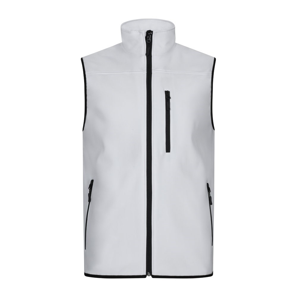 Softshell-Weste (280 g/m²), mit Polarfutter, aus Polyester (94%) und Elastan (6%). Mit verdeckter Zentralreißverschlussleiste. Enthält 3 Taschen mit verdecktem Reißverschluss. Größe: XS, S, M, L, XL, 2XL, 3XL