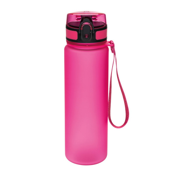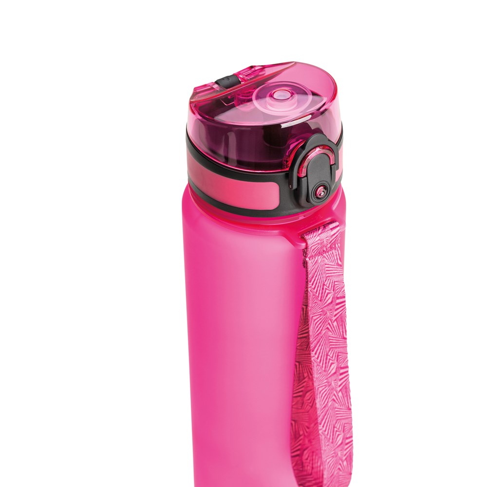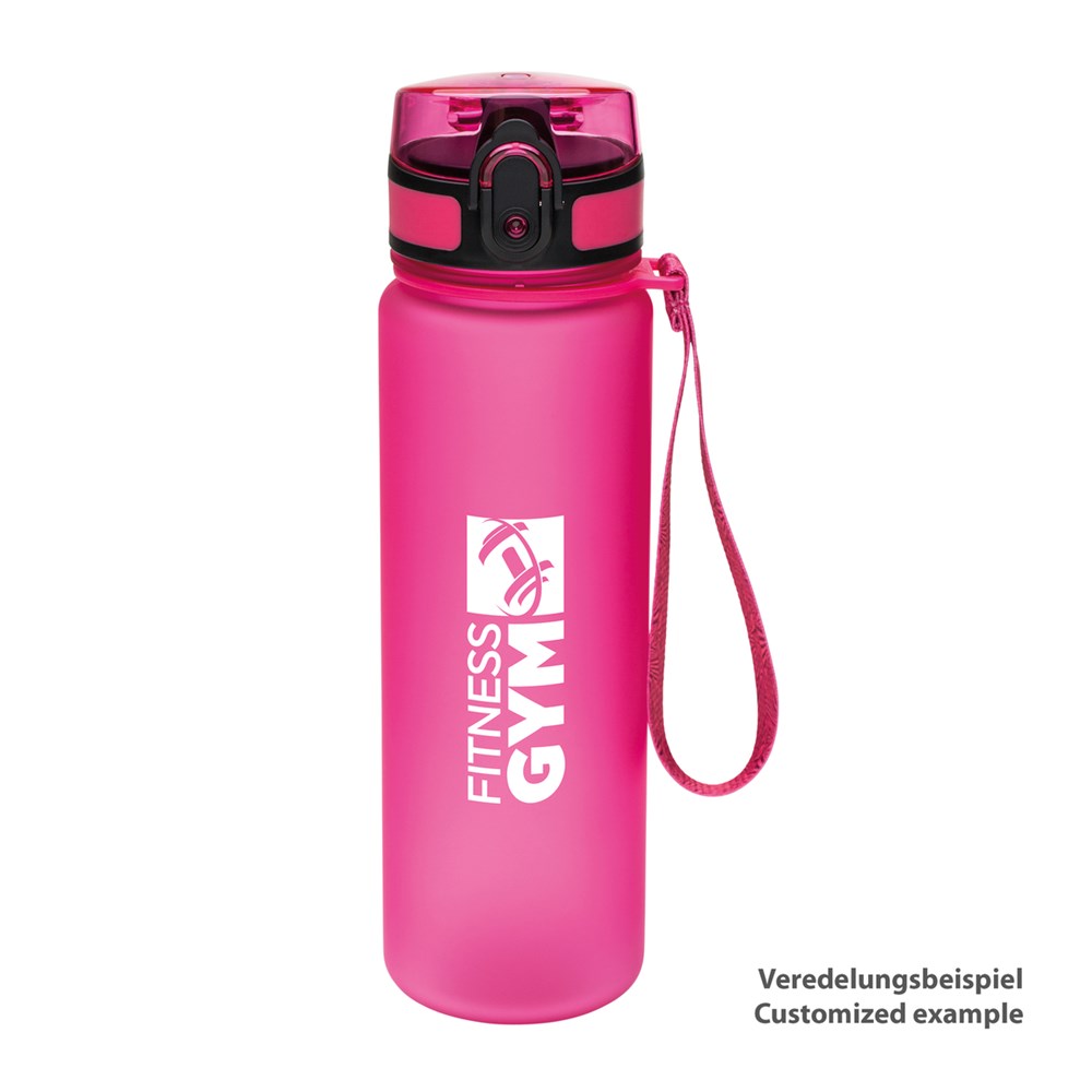Die Sporttrinkflasche aus Tritan hat einen Sportverschluss zum einhändigen Öffnen, eine Trageschlaufe, ist sehr strapazierfähig und fasst insgesamt 500 ml.