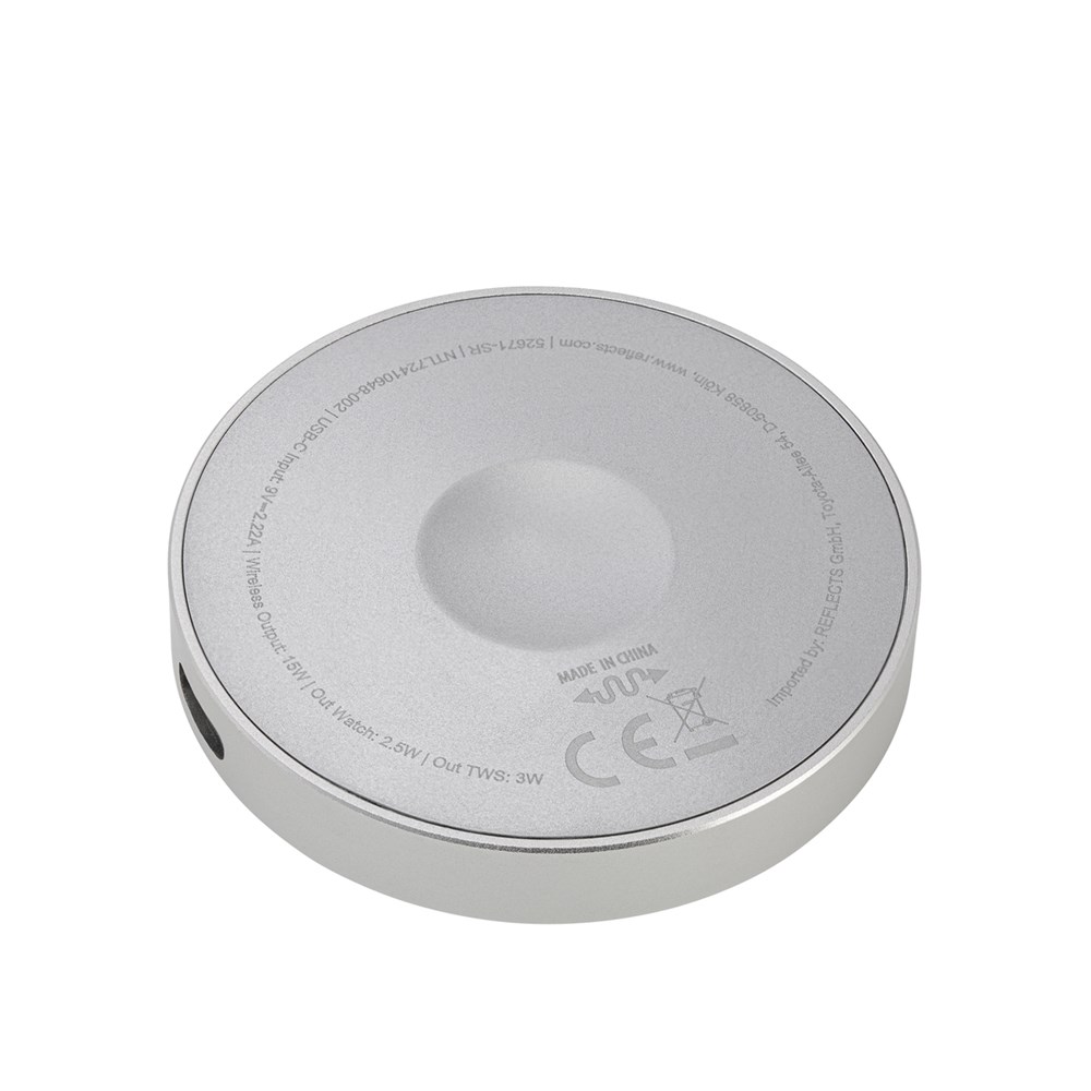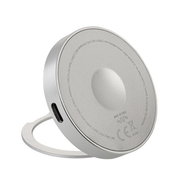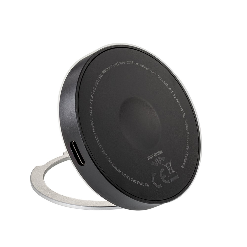 Dieser 3-in-1 multifunktionale Wireless Charger bietet Ihnen hohen Ladekomfort, sei es zu Hause, im Büro, im Café, am Flughafen oder am Bahnhof. Mit bis zu 15 Watt für kompatible Geräte und 3 Watt für Apple® Watch ermöglicht er äußerst effizientes Laden. Die magnetische Ladefläche bietet einen sicheren Halt für die Endgeräte, die die Technologie von MagSafe® unterstützen. Klappen Sie den Ring auf der Rückseite auf, wird der Charger im Handumdrehen zu einem praktischen Handyständer.