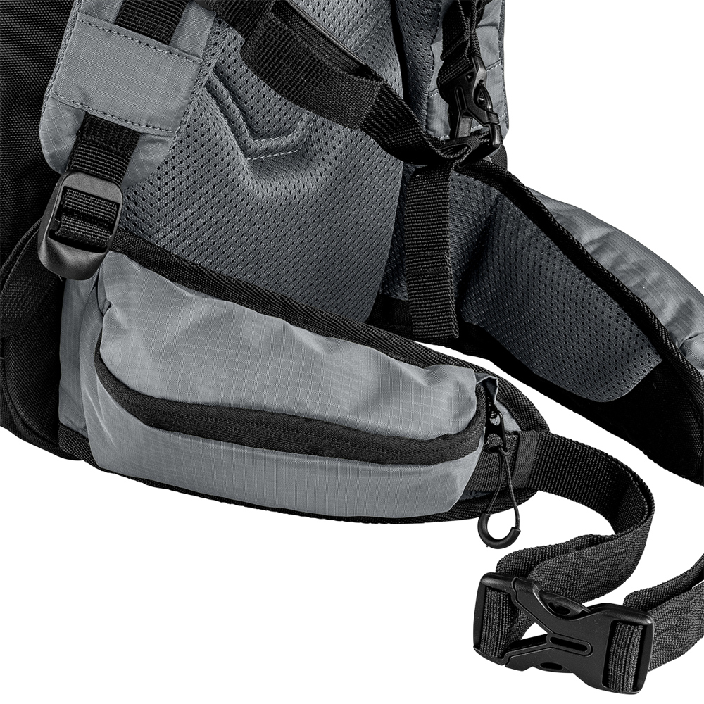 Unser funktioneller Wanderrucksack ermöglicht schnellen Zugang zum Hauptfach mittels Reißverschluss und bietet eine seitliche Stretch-Mesh-Tasche für Ihre Wasserflasche. Verstellbare Brust- und Hüftgurte sorgen für optimalen Tragekomfort, während eine Handytasche im Hüftgurt Ihr Smartphone sicher aufbewahrt. Das atmungsaktive Mesh-Rückenteil garantiert angenehme Belüftung, und die Schutzhülle mit reflektierendem Logo sorgt für mehr Sicherheit.