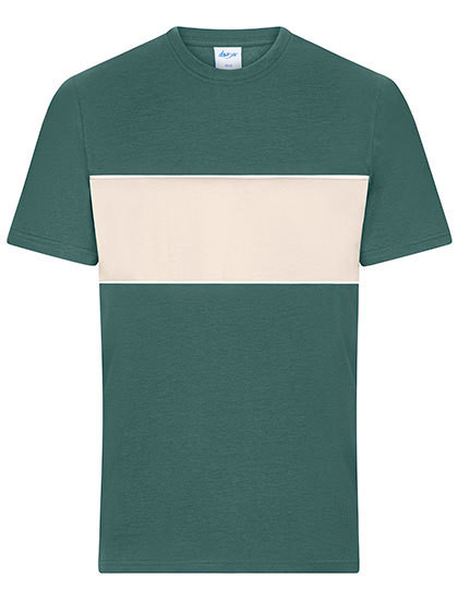 Gekämmte, ringgesponnene BIO-Baumwolle, Single Jersey | Rundhalsausschnitt | Kontrastfarbiger Blockeinsatz mit Paspel im Vorderteil | Bündchen mit Elasthan