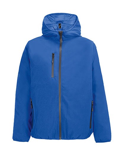 Aus recyceltem Polyester | Dreilagiges Softshell-Gewebe | Wasserdichte und atmungsaktive 5000-mm-Membran | Vollständig wattierte Softshelljacke für den Winter | Kapuze mit elastischem Abschluss | Vorderverschluss, Seiten- und Brusttaschen mit schwarzem, wasserdichtem Nylon-Reißverschluss | Drei Innentaschen | Reißverschluss zur individuellen Anpassung | Elastische Ton-in-Ton-Schrägbandeinfassung an Bündchen und Saum