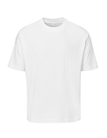 100% Baumwolle (Bio-Baumwolle oder Baumwolle in Umstellung) | Single-Jersey | Unisex-Oversized-Passform | Weich und schwer | Überschnittene Schulter | Tiefer Saum mit Doppelnaht an Körper und Ärmeln | Grober 1x1-Ripp-Kragen | Abreißbares Nackenetikett | Pflegeetikett mit QR-Code zur Rückverfolgung der Lieferkette und Prüfung der positiven Auswirkungen des Kaufs von Biomaterialien