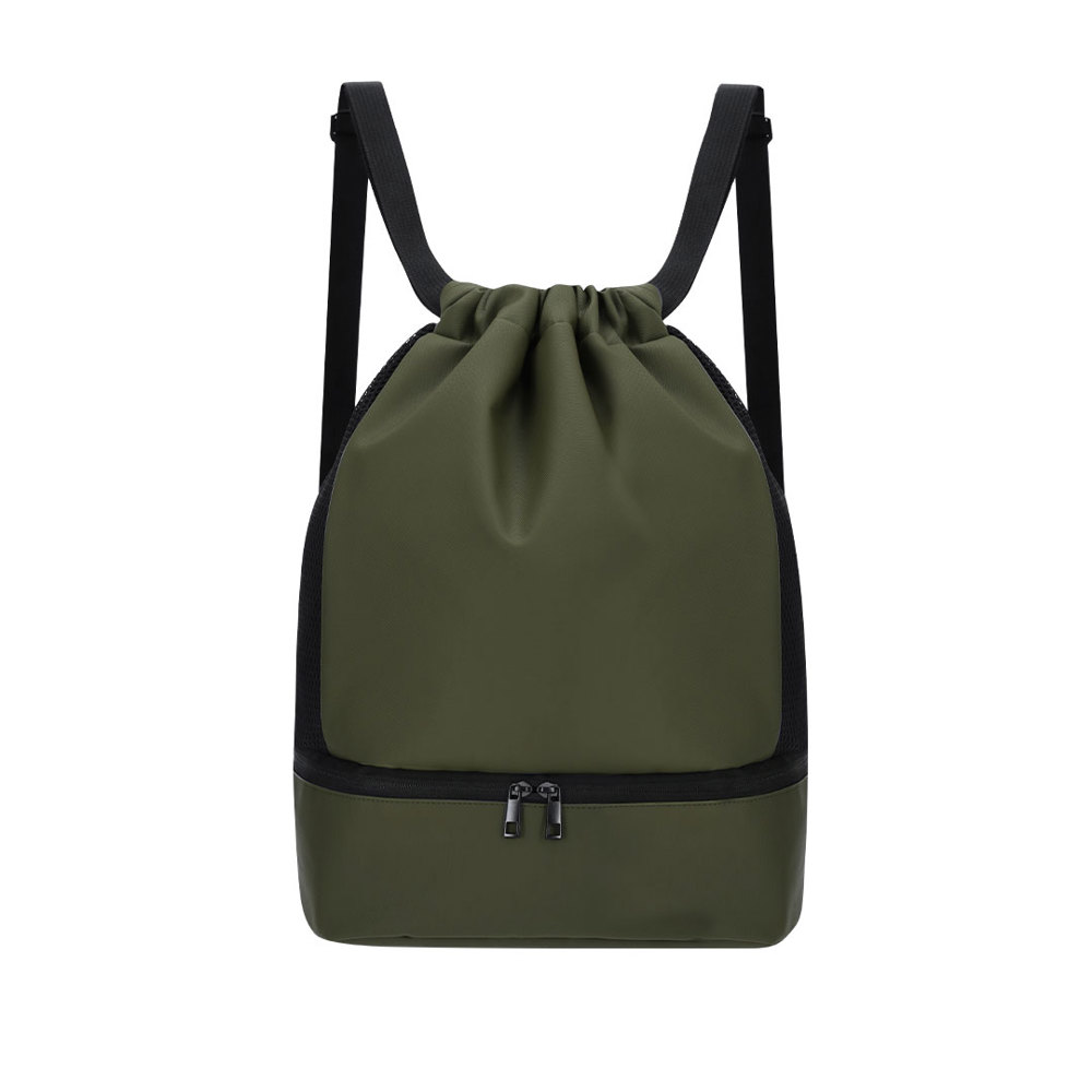 Rucksack aus weichem PU mit Hauptfach mit Kordelverschluss und einer kleinen Innentasche mit Reißverschluss. Enthält eine Tasche im Boden für die Schuhe mit doppelt Reißverschluss und vorderen Taschen mit leicht zugänglichem Reißverschluss. Mit atmungsaktiven Seitenteilen und verstellbaren Schulterriemen.