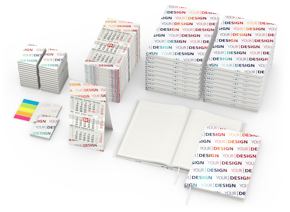 • Mini 3 green+blue Tischkalender (3-Monatskalender); Menge: 50 Stück; Format: 95 × 198 mm gesamt; 95 × 135 mm Kalendarium; Kalendarium: Deutsch 3sprachig D/GB/F hellgrau/rot; Verarbeitung: Kalenderblock mit Kopfleimung auf Rückwand aufgeklebt; Ausstattung: dreieckiger Dachaufsteller aus Karton; Datumsschieber rot; Material: Recyclingpapier – hergestellt aus 100 % Altpapier mit dem Umweltzeichen „Blauer Engel“; Werbefläche: am Kopf, Fuß und auf kompletter Rückseite; Druck: 4C-Quality Digital inklusive; Verpackungseinheit: 500; Zolltarifnummer: 4910000000