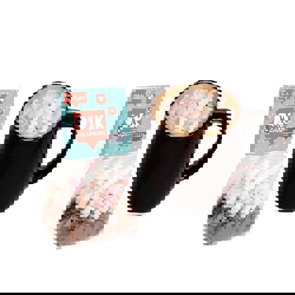 Blockbeutel mit Topkarte und heißer Schokoladenmischung