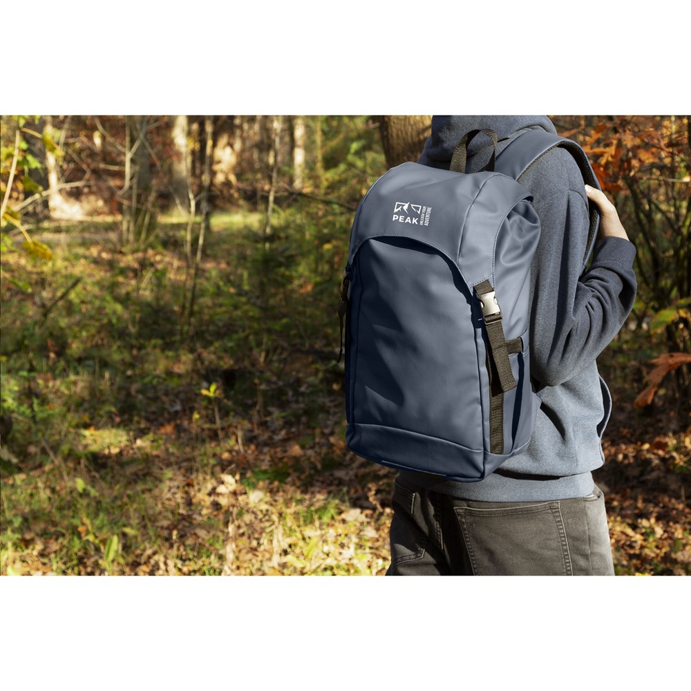 Sehr geräumiger Rucksack aus wasserabweisendem, 100% recyceltem Polyester. Dieser Rucksack verfügt über ein sehr geräumiges Hauptfach mit separatem Laptop-Fach (bis zu 15,6 Zoll), ein zusätzliches Reißverschlussfach an der Seite und ein Fach für eine Trinkflasche. Die verstellbaren Schultergurte und der Rücken sind mit atmungsaktivem Mesh und Schaumstoff für zusätzlichen Tragekomfort ausgestattet. Sauber verarbeitet und gefüttert mit 100% recyceltem 210D-Polyester. Ausgestattet mit einem Kordelzugverschluss und einer Überschlagklappe mit Druckknöpfen sowie einem reflektierenden Akzent für bessere Sichtbarkeit im Dunkeln. Perfekt als Sporttasche, mit viel Platz für Kleidung und Schuhe, aber auch ideal als Reisetasche oder Schulranzen. GRS-zertifiziert. Fassungsvermögen ca. 20 Liter.