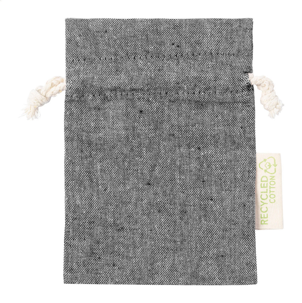 Geschenkbeutel aus recycelter Baumwolle mit Kordelzugverschluss. Mit Label recycelte Baumwolle. Material: 100 % recycelte Baumwolle, 120 g/m².