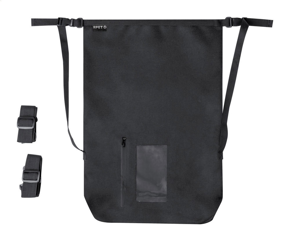 Wasserdichter Matchsack/Rucksack aus 300D RPET-Polyester mit Reißverschlusstasche (touchscreenfähig) und verstellbaren Schultergurten. Fassungsvermögen: 25l.
