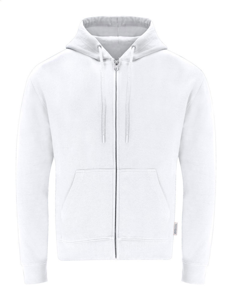 Kapuzensweatshirt mit Reißverschluss und Vordertaschen. Material: 60 % Bio-Baumwolle und 40 % RPET-Polyester, 280 g/m².
