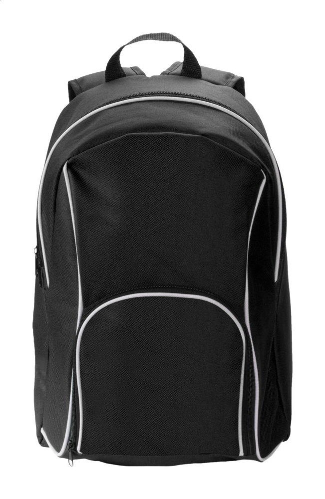 Rucksack mit gepolsterter Rückenpartie und gepolsterten Tragegurten und Reißverschlusstasche. Material: 600D Polyester.