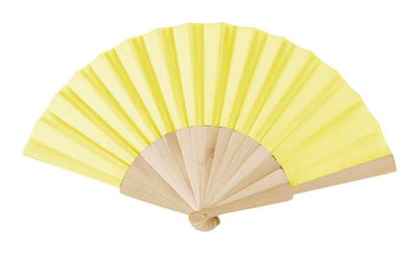 Handfächer aus Polycotton mit Holzrippen.