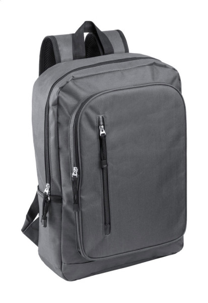 Rucksack mit mehreren Reißverschlussfächern, gepolstertem Laptopfach (15") und einstellbaren Schultergurten. Material: 600D Polyester.