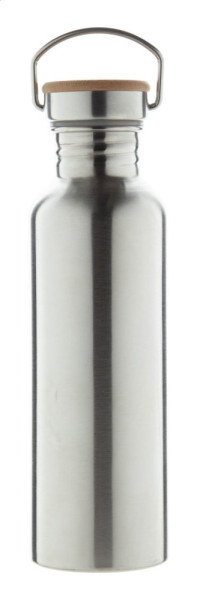 Edelstahl-Trinkflasche mit Tragedeckel aus Bambus. Füllmenge: 750 ml.